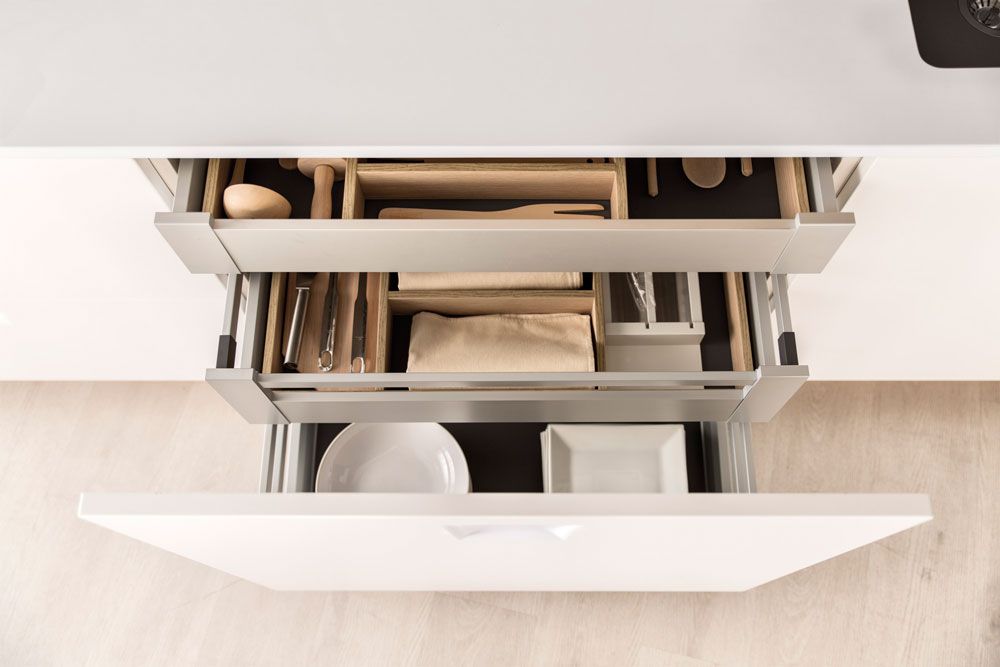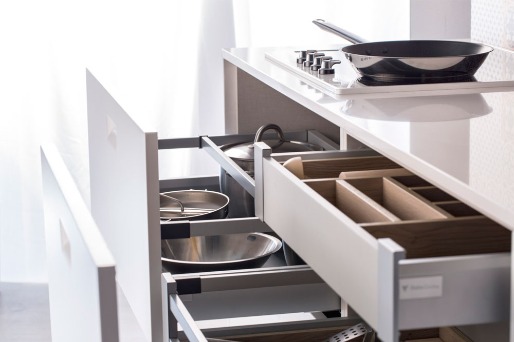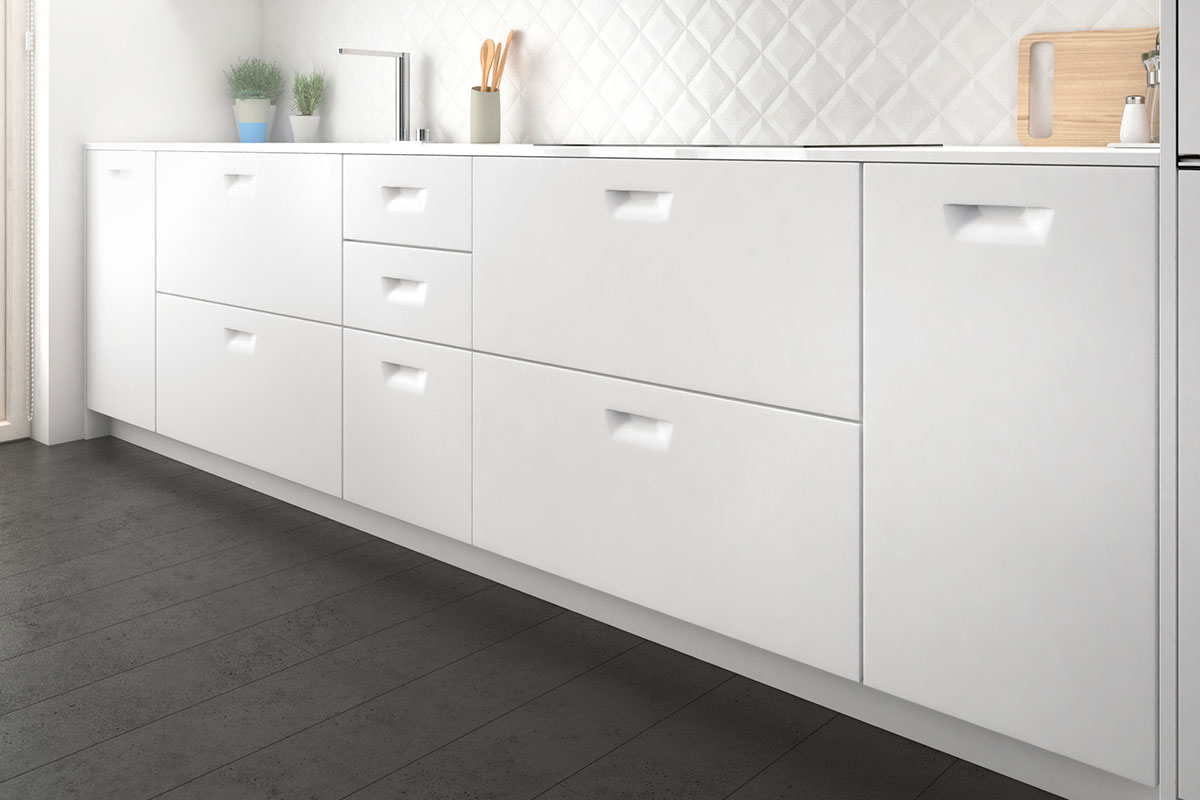 Kala es un modelo de cocina muy especial, ya que gracias al tirador mecanizado, se une diseño y funcionalidad en la misma puerta, consiguiendo fácil apertura y limpieza.