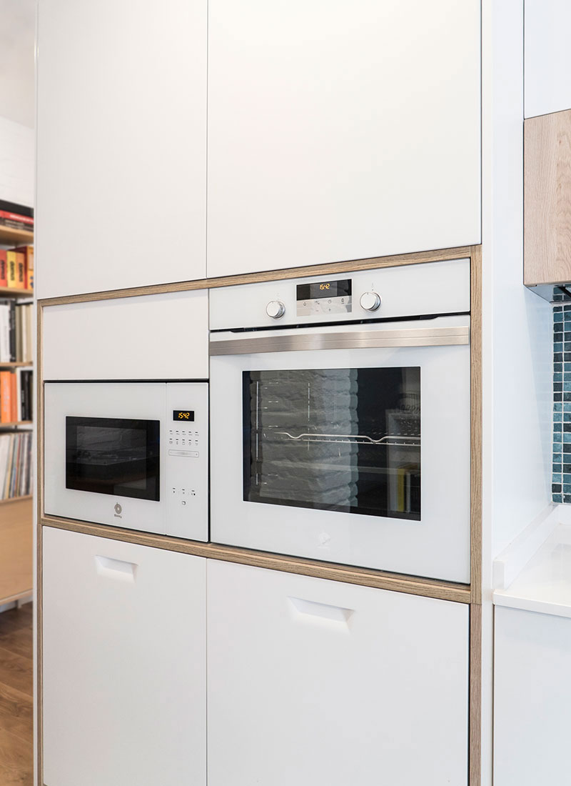 Cuando el espacio es limitado, el diseño lo es todo. Esta cocina abierta al salón está pensada para sacar el máximo partido a cada metro disponible sin renunciar a la estética.