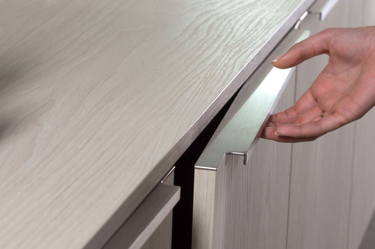 Integrado en el canto, fabricado en aluminio.